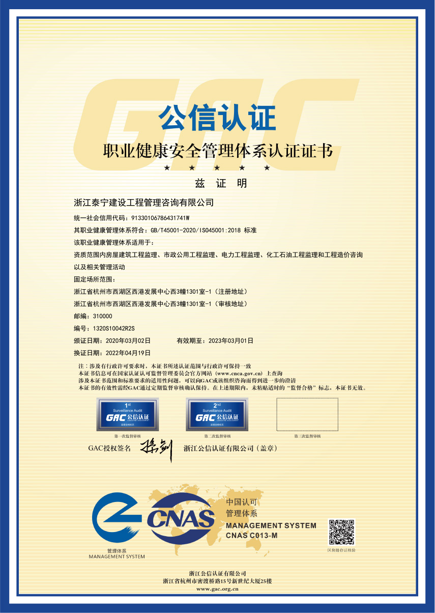 職業(yè)健康安全管理體系認(rèn)證證書(shū)