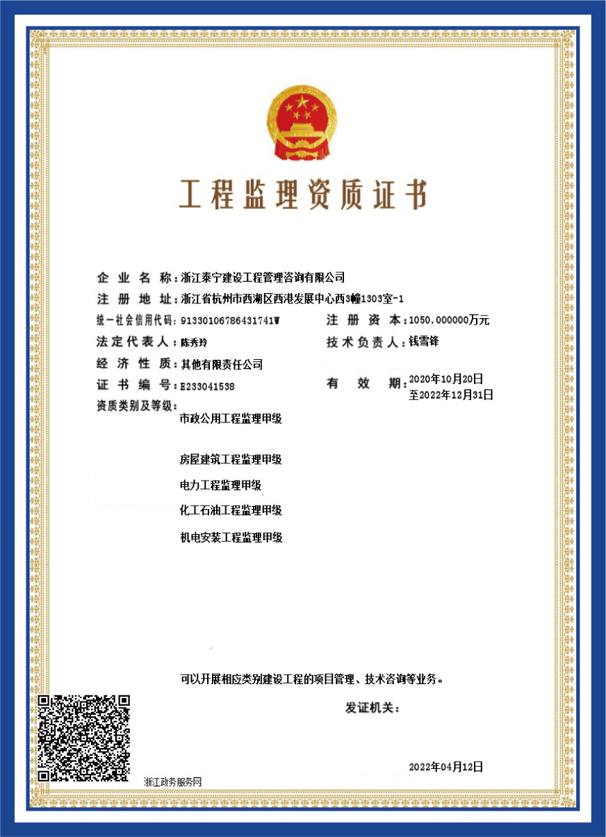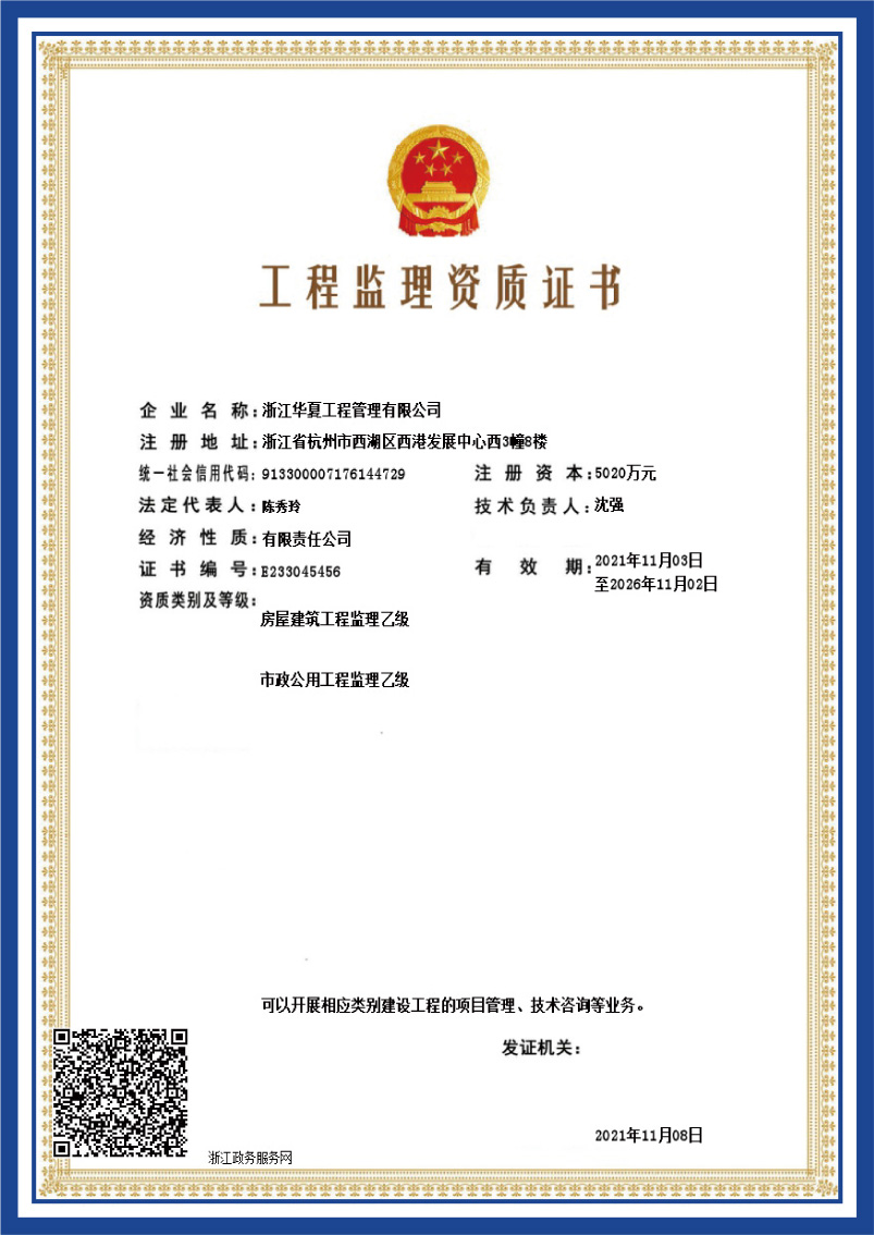 工程監(jiān)理資質(zhì)證書(shū)