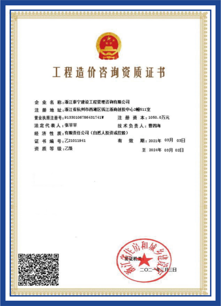 工程造價(jià)咨詢資質(zhì)證書(shū)
