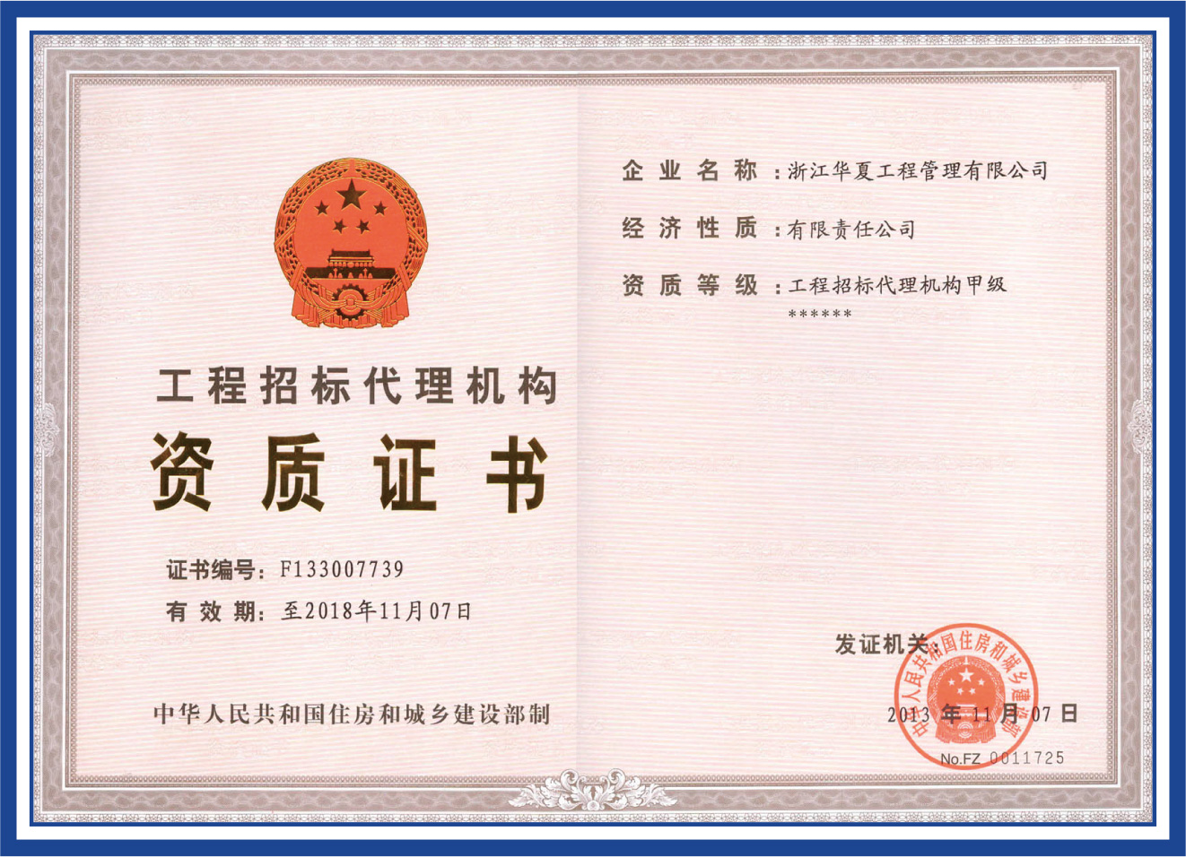 工程招標(biāo)代理機(jī)構(gòu)資質(zhì)證書(shū)